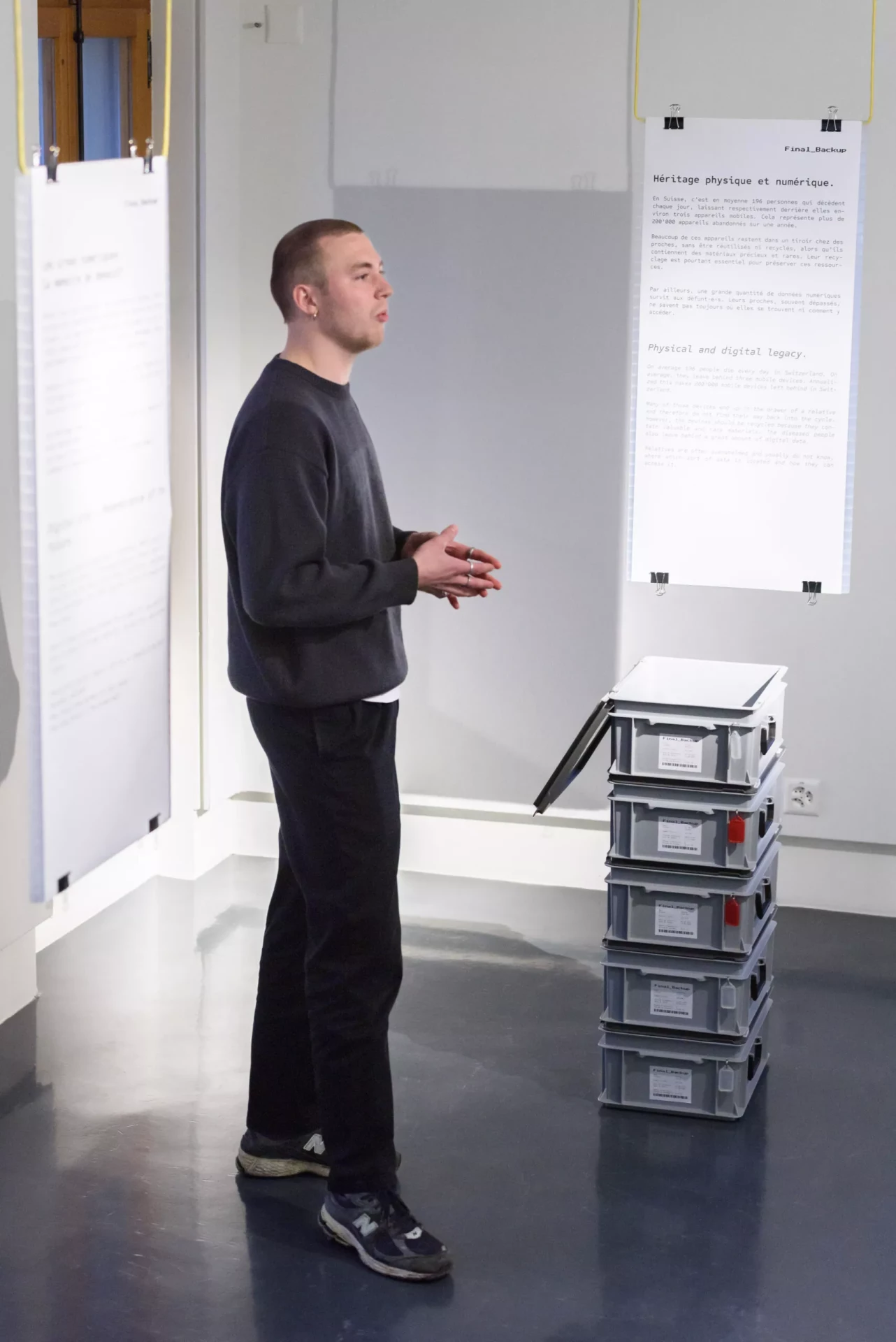 Final_Backup a été distingué par plusieurs prix, dont celui de l’Association suisse du design et nommé pour le prix du département de design de la ZHdK ainsi que pour « Die Besten » by Hochparterre. Initialement conçue comme un projet de bachelor, l’exposition a été présentée publiquement pour la première fois à Pyxis !